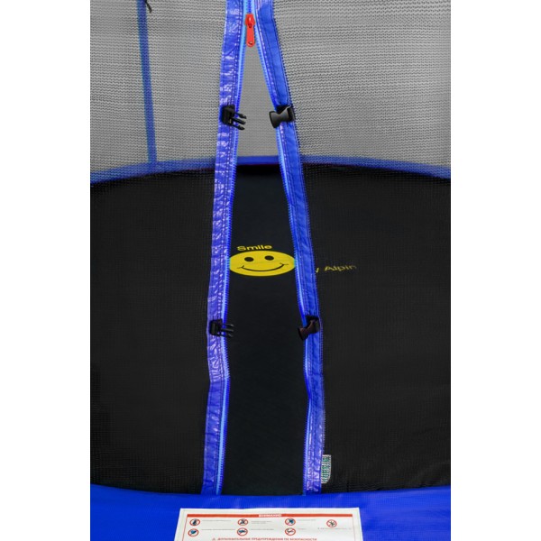 - Специально разработанная конструкция легкого входа и выхода с батута. Замок-молния позволит Вам с легкостью попасть на батут. Дополнительная защита с внешней стороны от открывания, не позволит ребенку самостоятельно покинуть батут без помощи взрослого. Что исключает опасность получения травмы при падении с батута.
