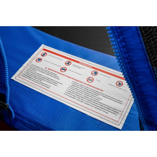 - Специально разработанная конструкция легкого входа и выхода с батута. Замок-молния позволит Вам с легкостью попасть на батут. Дополнительная защита с внешней стороны от открывания, не позволит ребенку самостоятельно покинуть батут без помощи взрослого. Что исключает опасность получения травмы при падении с батута.