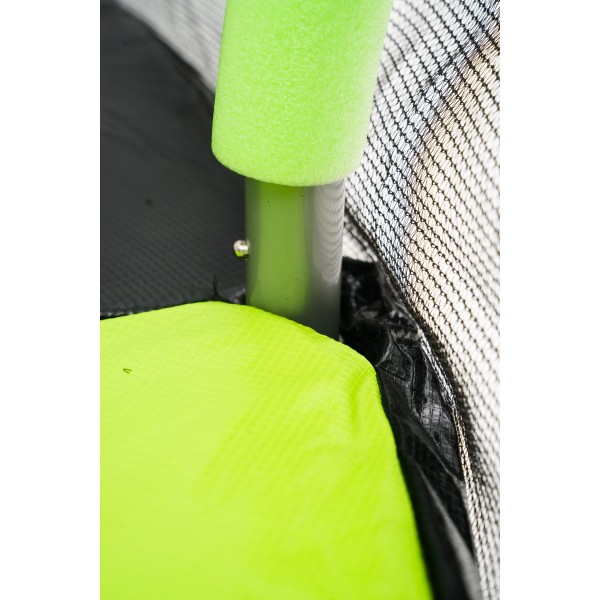 - Высокая защитная сетка – важное условие для безопасности батута. Сетка выполнена из высококачественного нейлона, эластична, обладает амортизирующими свойствами. Ширина каждой ячейки подобрана таким образом, чтобы даже самые маленькие пальчики не могли застрять в ней. Вход/выход через сетку выполнен на молнии фиксирующими защелками на внешней стороне сетки для защиты от случайного открытия.