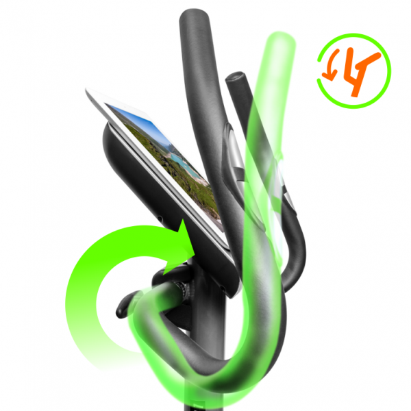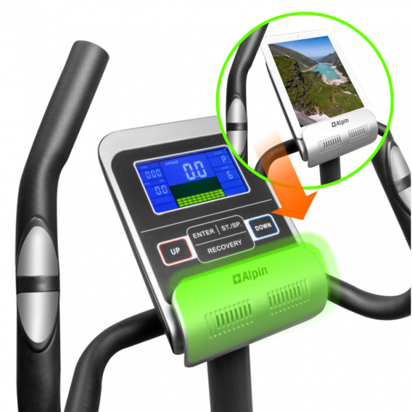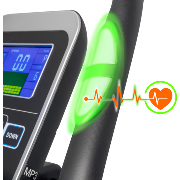 Тренировочный компьютер представлен многофункциональным цветным LCD дисплеем с подставкой для смартфона и планшета. За показатели пульса отвечают вмонтированные в рукоятки сенсорные датчики пульса. В программный пакет входят 21 предустановленная программа, направленные на тренировку скоростных качеств, выносливости, укрепления сердечно-сосудистой системы и похудания. Помимо предустановленных программ, можно воспользоваться самостоятельно регулируемым ручным режимом, а также создать собственную программу. Важной особенностью тренировочного компьютера является наличие 3-х пульсозависимых программ с предустановленными значениями 55%, 75% и 95% от целевого максимального пульса.