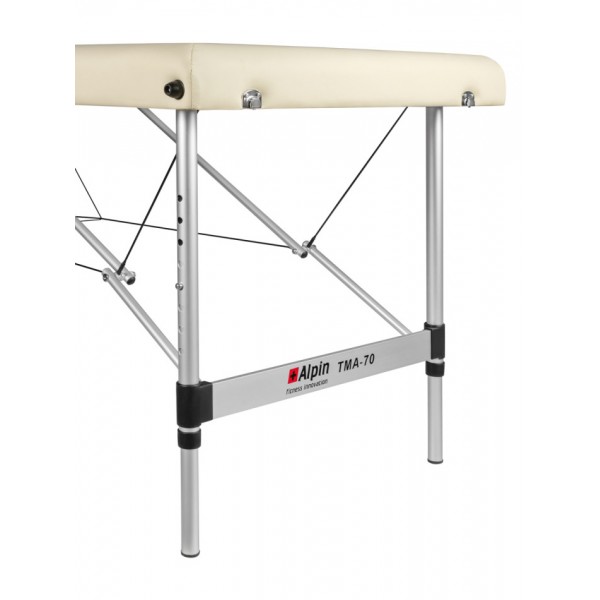 Складной 2-ух секционный переносной массажный стол Alpin TMA-70 CREAM изготовлен с использованием только самых высококачественных компонентов. Благодаря применению алюминия в конструкции рамы вес стола существенно облегчен и составляет 13.5 кг. Складывается в форму чемодана и удобен для транспортировки. Стол возможно использовать для косметологических и SPA процедур, а также массажа.