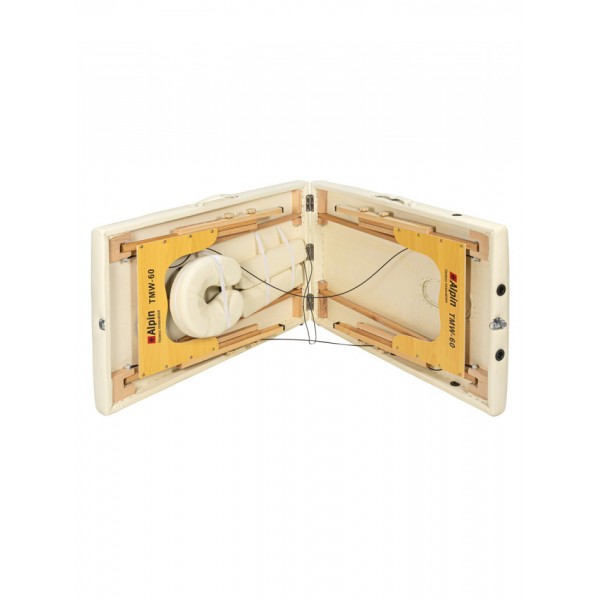 Складной 2-ух секционный переносной массажный стол Alpin TMW-70 Cream изготовлен с использованием только самых высококачественных компонентов. Благодаря применению дерева в конструкции рамы вес стола существенно облегчен и составляет 14.5 кг. Складывается в форму чемодана и удобен для транспортировки. Стол возможно использовать для косметологических и SPA процедур, а также массажа.