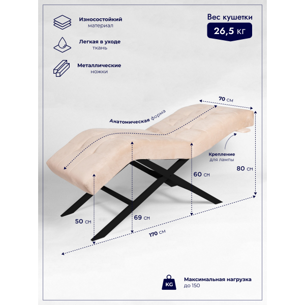 Износостойкая обивка – мягкий велюр с высоким коэффициентом на истирание, приятный на ощупь и легкий в уходе.