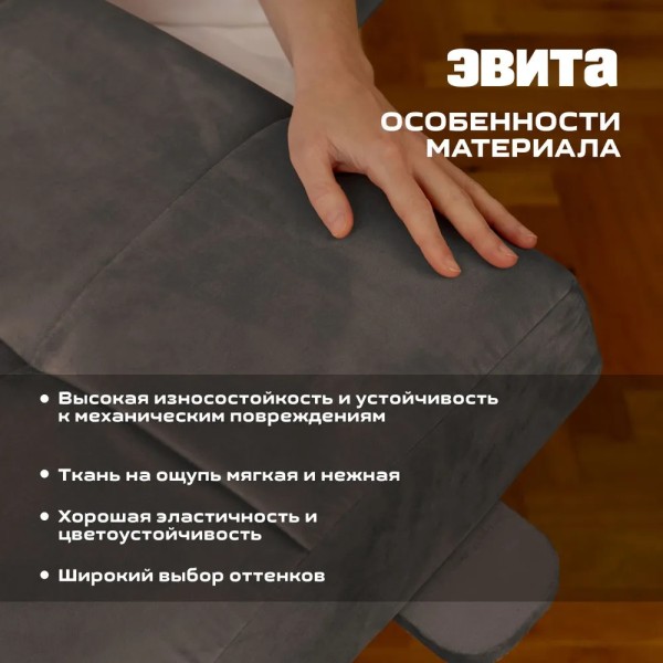 Износостойкий велюр, используемый в качестве обивки, приятен на ощупь и практичен, обеспечивая длительный срок службы.