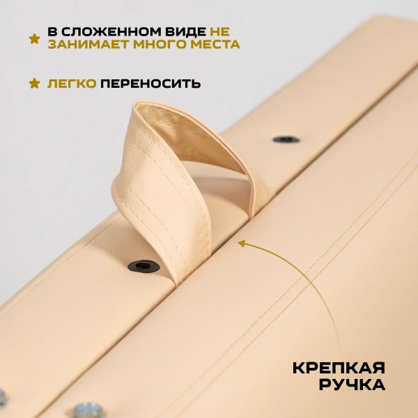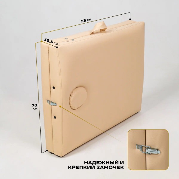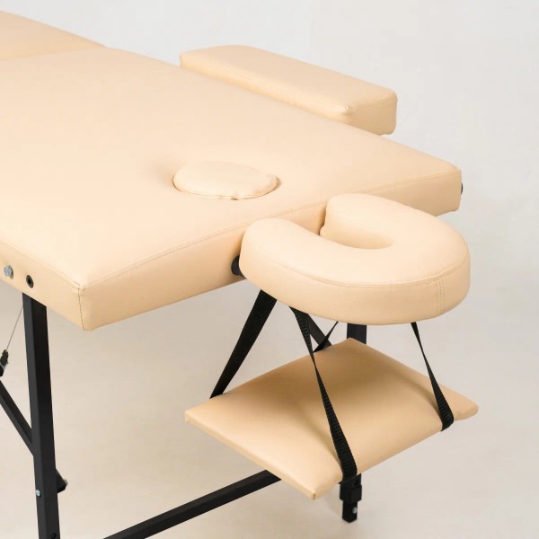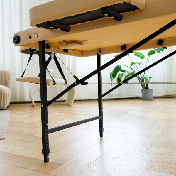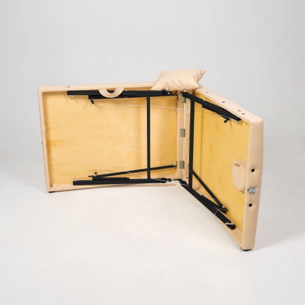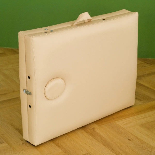 Массажный стол легко складывается, что делает его идеальным выбором для транспортировки или для тех, кто хочет сэкономить пространство в кабинете.