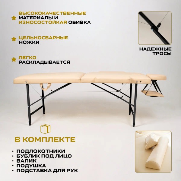 В комплекте идет: подлокотники, бублик под лицо, подушка, валик, подставка для рук.