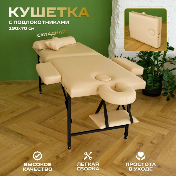 Комплектацияподлокотники, бублик под лицо, подушка, валик, подставка для рук