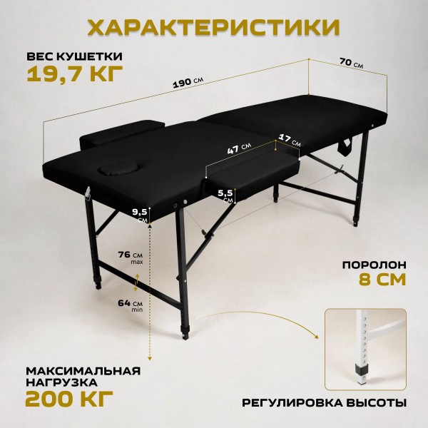 - Вес кушетки: 19,7 кг.