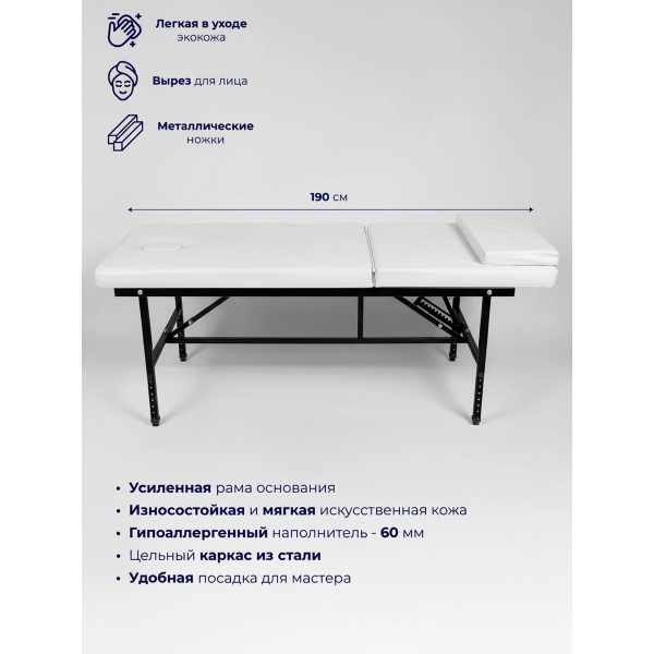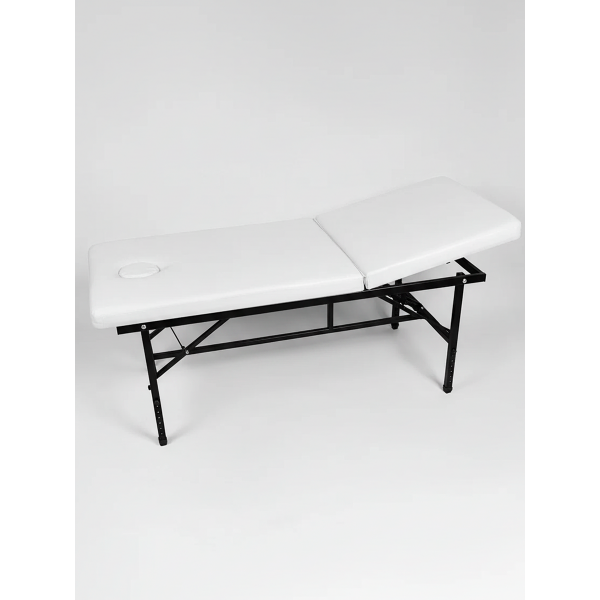 Стационарный массажный стол 190х70 с регулировкой по высоте (белый, с черным металлом)