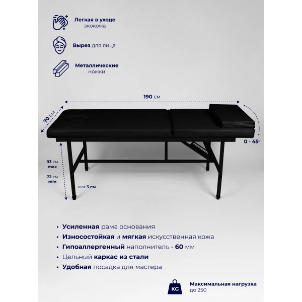 Комфортная рабочая поверхность 190×70 см — клиенту просторно и удобно во время любых процедур.