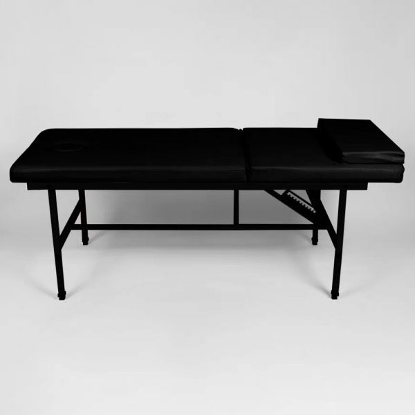 Стационарный массажный стол 190х70 с регулировкой по высоте (черный, с черным металлом)