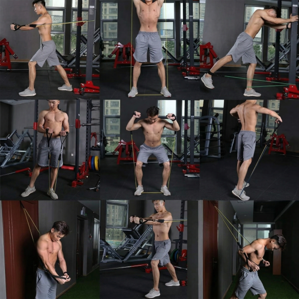 • Богатая комплектация: в набор входят 5 латексных трубок с надежными карабинами, 2 ручки, 2 манжеты для ног, дверной фиксатор и удобная сумка для хранения.