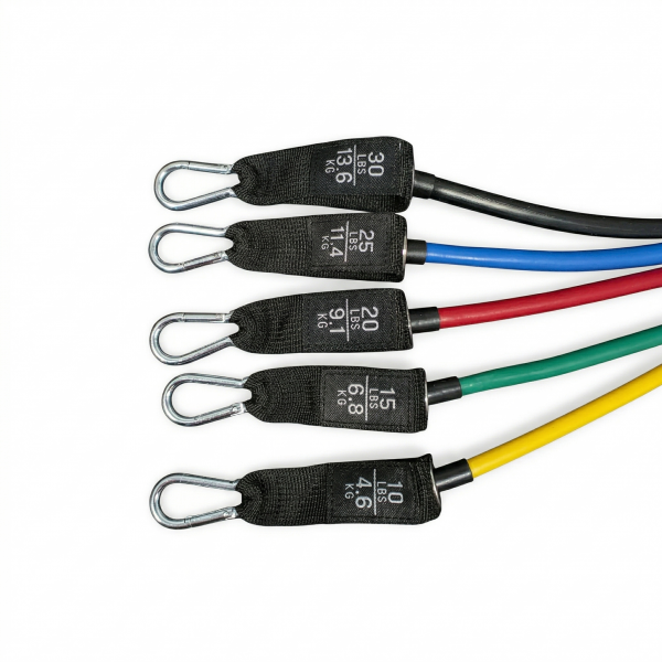 • Вариативная нагрузка: трубки имеют разную степень сопротивления (от 4,6 до 13,6 кг). Вы можете комбинировать их, достигая внушительной суммарной нагрузки до 90 кг.