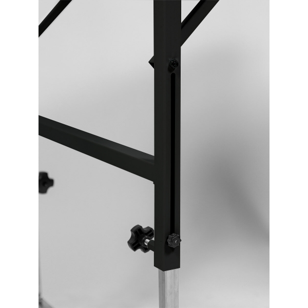 Прочная металлическая конструкция гарантирует устойчивость и долгий срок службы, а пластиковые заглушки на ножках защищают пол от царапин и предотвращают скольжение.